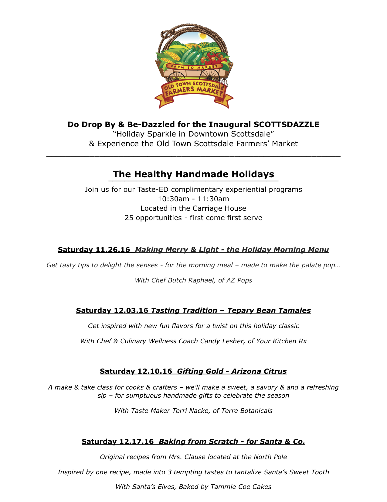 Here is an example of the edible education series that Terri hosts with her food friends at the Old Town Scottsdale Farmers Market...